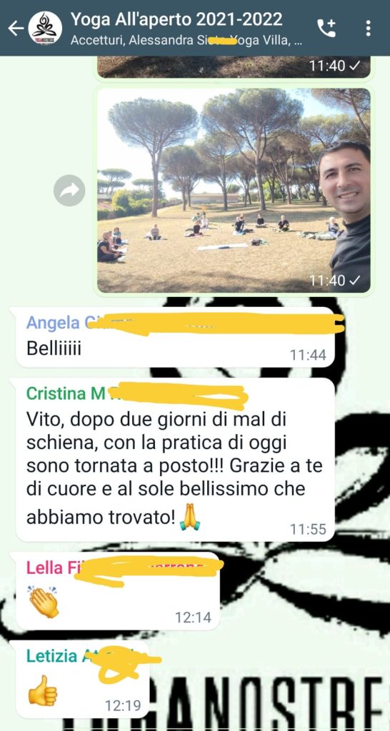 Segui i miei corsi on line sull’Hatha Yoga per il mal di schiena sia on line ovunque tu ti trovi, sia in presenza a Villa Pamphili o presso la sede in Via Vittorio Spinazzola, 52 (parallela di via Silvestri) a Roma, vicino alla valle dei Casali e Villa Pamphili.